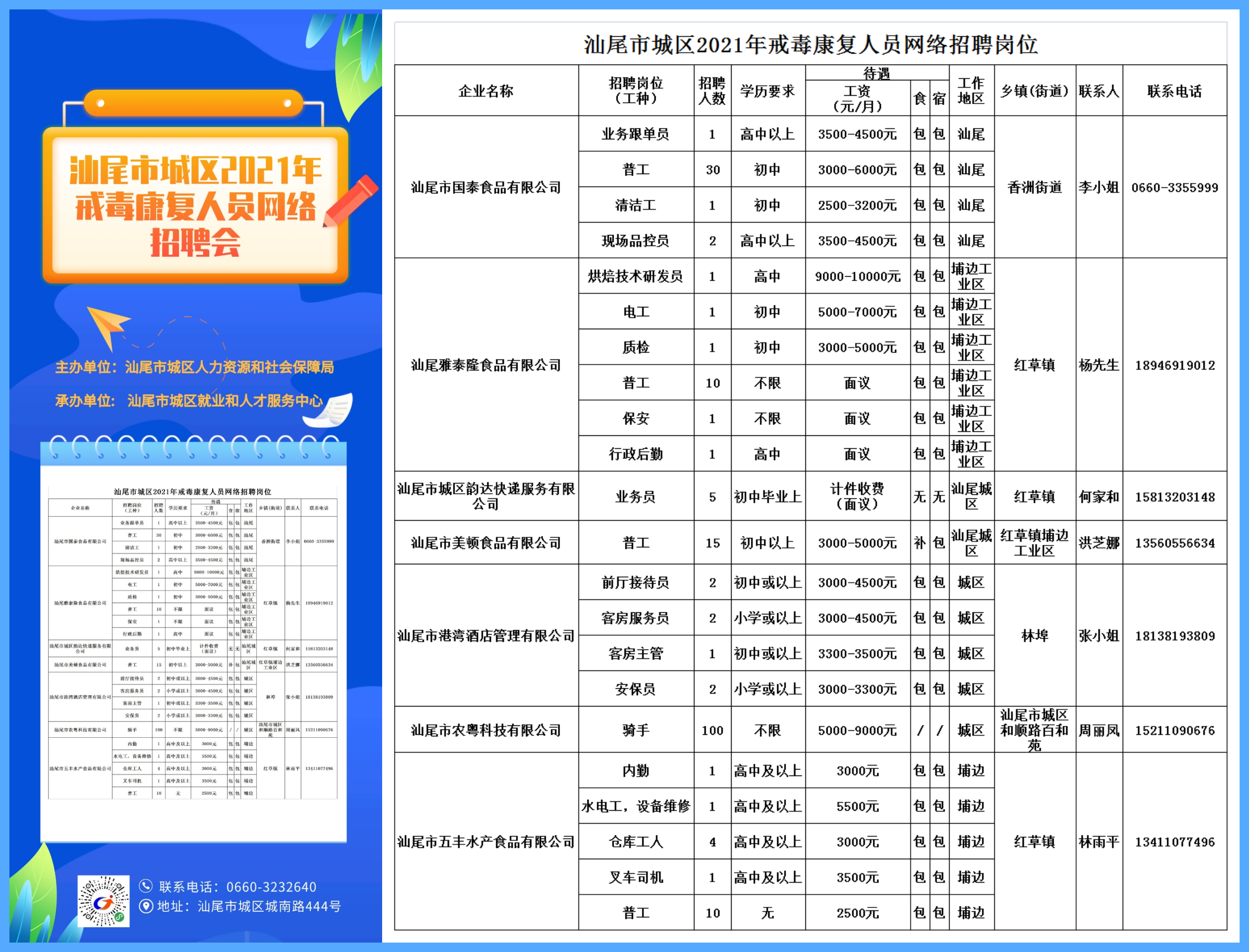 汕尾市城區2021年戒毒康復人員網絡招聘簡報