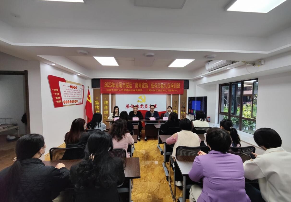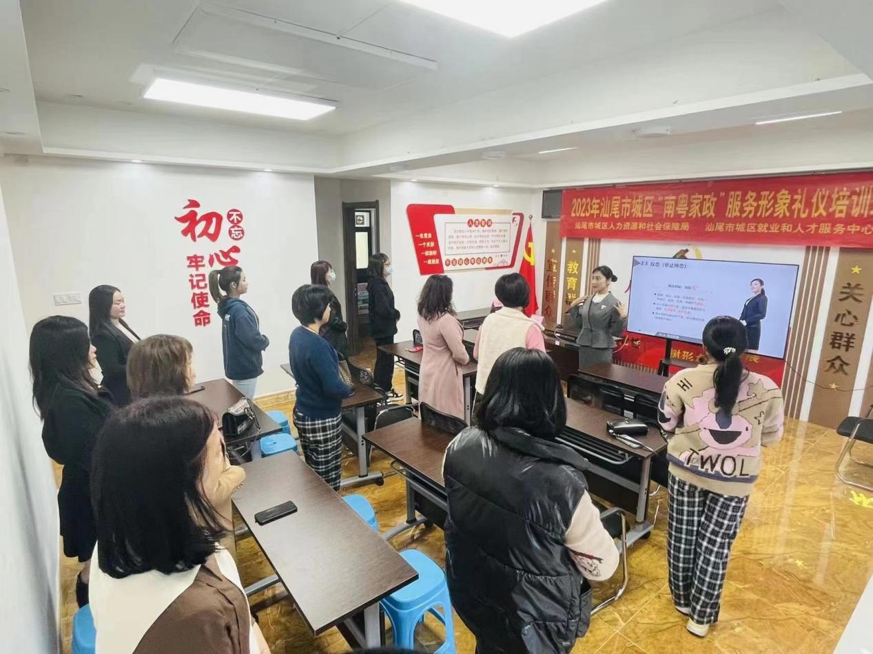 為全力促進城區(qū)家政服務(wù)業(yè)提質(zhì)擴容,提升家政服務(wù)業(yè)從業(yè)人員的綜合素質(zhì)和職業(yè)技能,擴大我區(qū)家政人才供給,推動“南粵家政”工程高質(zhì)量發(fā)展,37日,區(qū)人社局在汕尾市城區(qū)“南粵家政”基層服務(wù)示范站舉辦第二期“南粵家政”培訓(xùn)班—服務(wù)形象禮儀,為10余名家政從業(yè)人員及社區(qū)居民講授家政服務(wù)禮儀相關(guān)知識。區(qū)人社局黨組成員、副局長劉友揚及區(qū)就業(yè)中心副主任葉建塔等出席開班儀式。