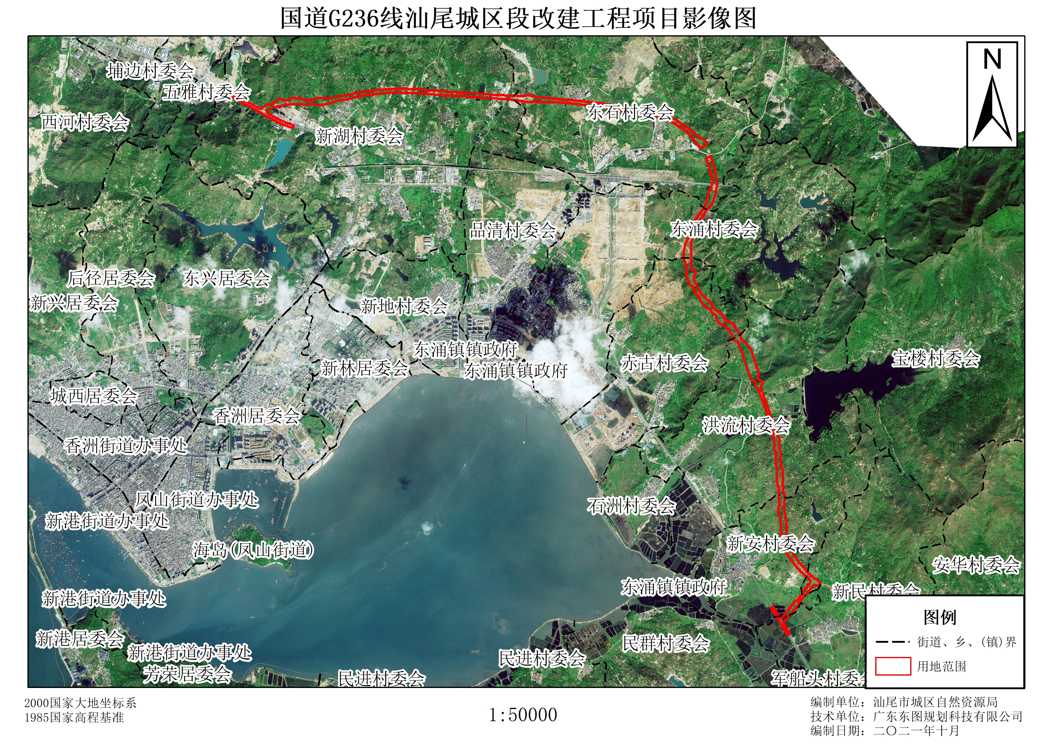 擬征收土地計劃實施國道G236線汕尾城區段改建工程項目。項目路線全長13.870公里,起于桂竹嶺(瑞城花園西北側,與現狀國道G236線相接),路線由西往東,經半寨村、石奎村、東石村,后轉東南方向,下穿汕汕鐵路、廈深鐵路,經赤古村、町前村、新安村,終于新民村西北側,接回既有國道G236線(詳見擬征地范圍圖)。